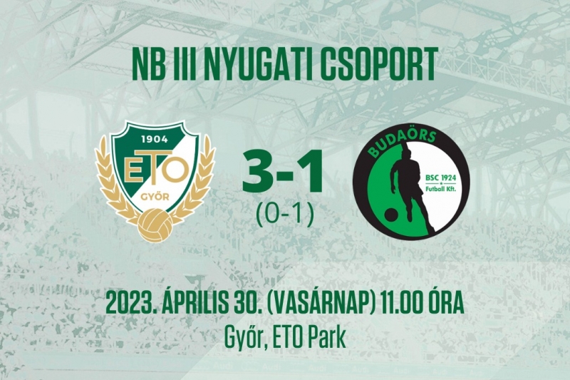 Az NB III Nyugati csoportjának 35. fordulójában a Budaörs gárdáját fogadta az ETO Akadémia. Fiataljaink a második félidő végén tíz perc alatt három gólt szerezve fordítottak a fővárosi csapat ellen.