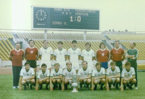 Álló sor balról jobbra: Józsa Zoltán gyúró, Palla Antal, Pozsgai Lajos, Pásztor Ferenc, Horváth Dénes, Magyar Lajos, Horváth László, Koós pályaedző, Kovács Imre vezetőedző